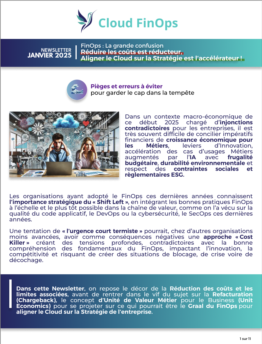 Bravo pour l'intervention. En un temps record, nous avons pu translater d'un mode "Audit" pour respecter une obligation de conformité à une approche "Projet" fédérant une Core Team de 25 personnes autour du sujet FinOps.